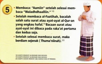 • Membaca surat al-Faatihah, namun, bacaan “Bismillaahirrahmaanirrahiim” dipelankan (tidak dikeraskan). [17]
