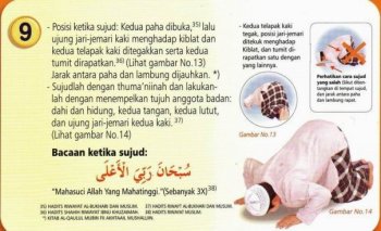 9. – Posisi ketika sujud: Kedua paha dibuka, [35] lalu ujung jari-jemari kaki menghadap kiblat dan kedua telapak kaki ditegakkan serta kedua tumit dirapatkan. [36] Jarak antara paha dan lambung dijauhkan. [*]